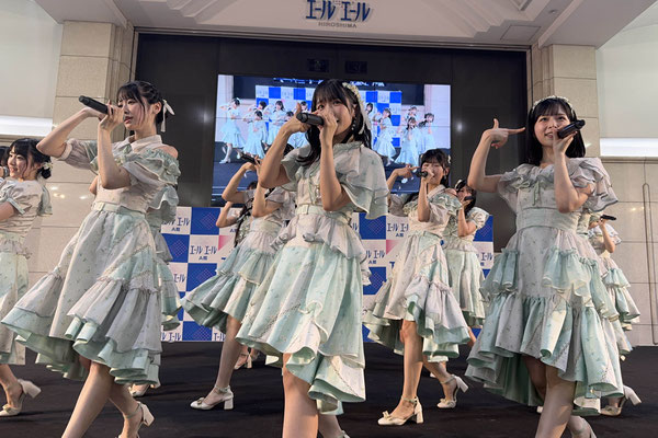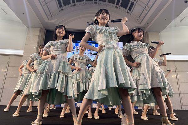 12thシングルに収録される『青空を語り合おう』を、手話を織り交ぜた振付でパフォーマンスすると石田千穂は「この楽曲は平和への想いを込めた楽曲です。私達も含めた平和を知らない世代にも、平和の尊さについて考えるきっかけになれるよう、これからも歌い続けていきたいです」と紹介。