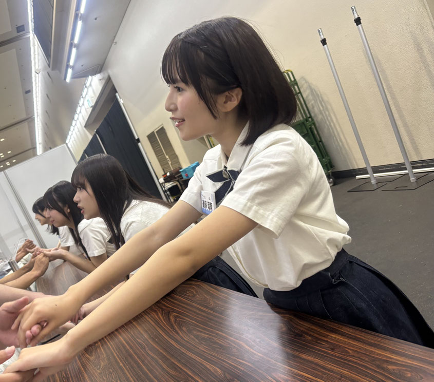 記念すべき初めての握手会、少し緊張もありますが、それ以上に皆さんにお会いできることが本当に楽しみです!短い時間の中でも、日頃の感謝の気持ちと笑顔をたくさんお届けできるように頑張ります!直接お話できるこの特別な時間を大切にして、一緒に素敵な思い出を作りたいです。たくさんお話して、楽しい気持ちになっていただけますように…!そして、私や4期研究生のみんなのことをもっと知りたいと思っていただけたら嬉しいです。