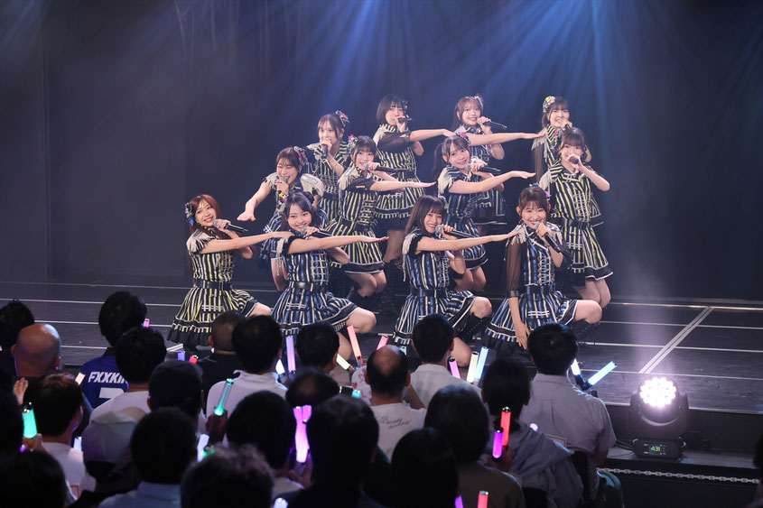 続いて35thシングル「Karma」のカップリング曲を初披露。BUMPで配信中のショートドラマ『IDOL OF THE DEAD~あなたの隣は死にました~』主題歌の「隣の人は?」は新ユニットOneGemの6名(北川が休業中のため)で披露。今作で初選抜となった相川暖花がセンターを務めます。さらにTeam S「どこまで嘘を言えたら」では野村実代がセンター、Team E「How did you know?」では大村杏がセンター、Team KⅡ「僕たちの疑問」では井上瑠夏がセンターで客席を魅了。