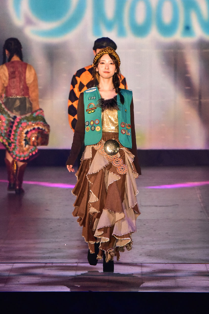 日向坂46金村美玖が GRAPEFRUIT MOONのランウェイを闊歩。グリーンベストの古着ユニークコーデで魅了。