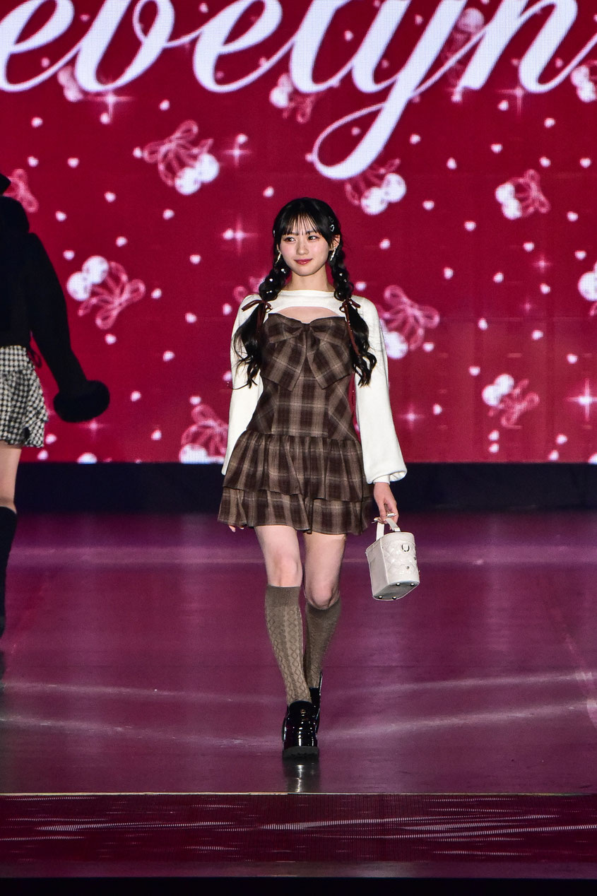 乃木坂46の川﨑桜がevelynのランウェイを闊歩。キュートなガーリーコーデで魅了。