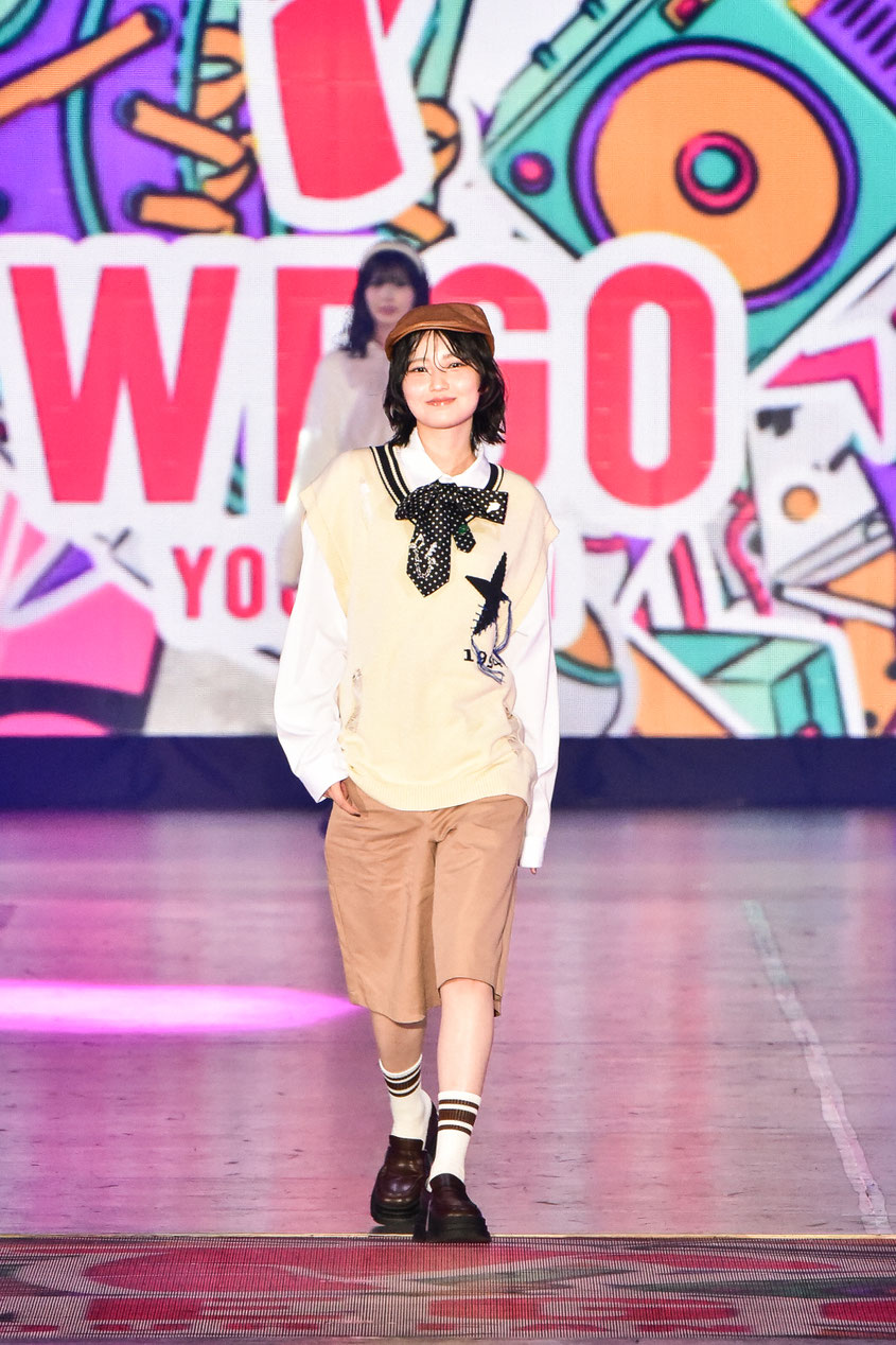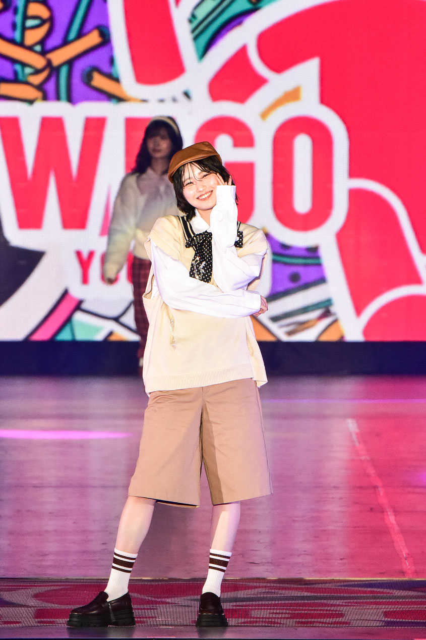 櫻坂46の的野美青がWEGOのランウェイを闊歩。ベレー帽&シャツ・ニットコーデで魅了。